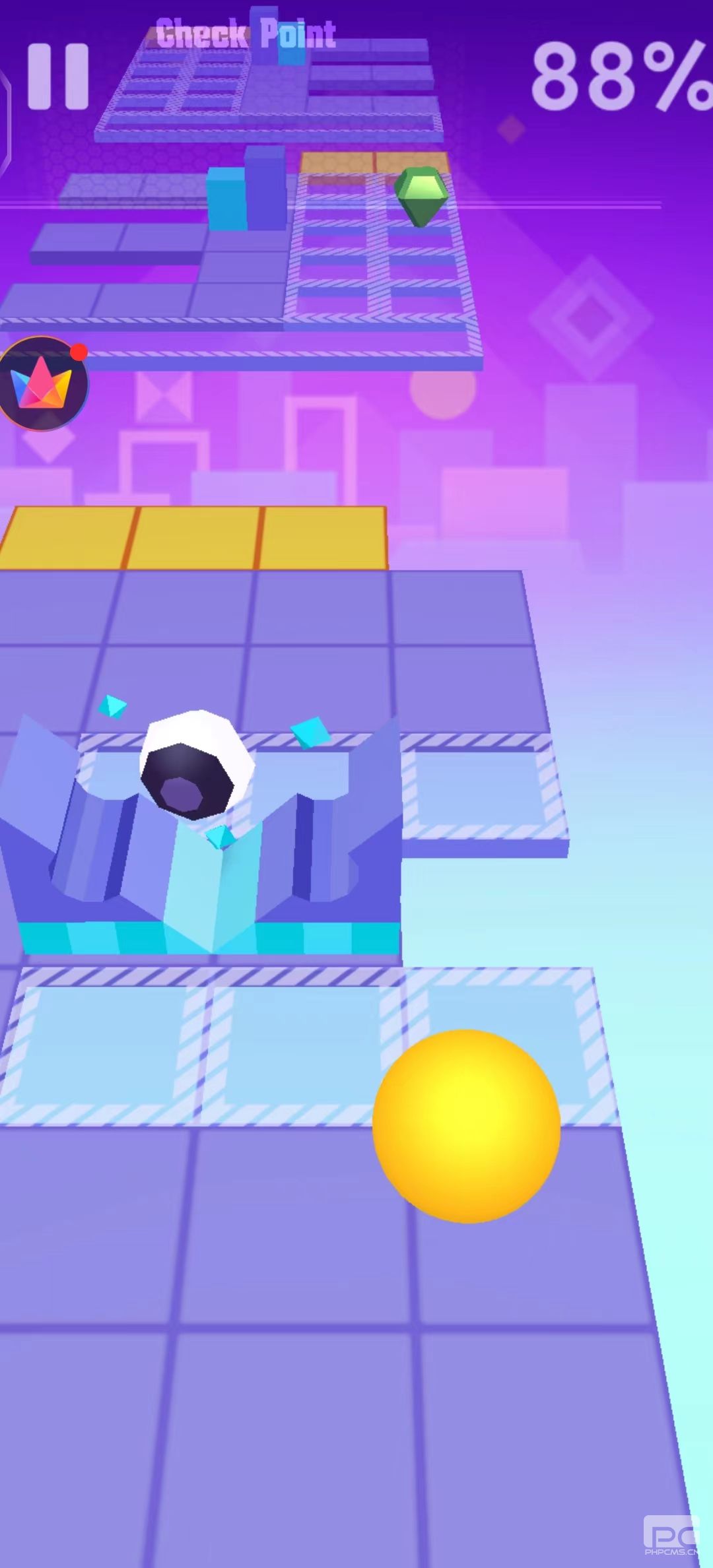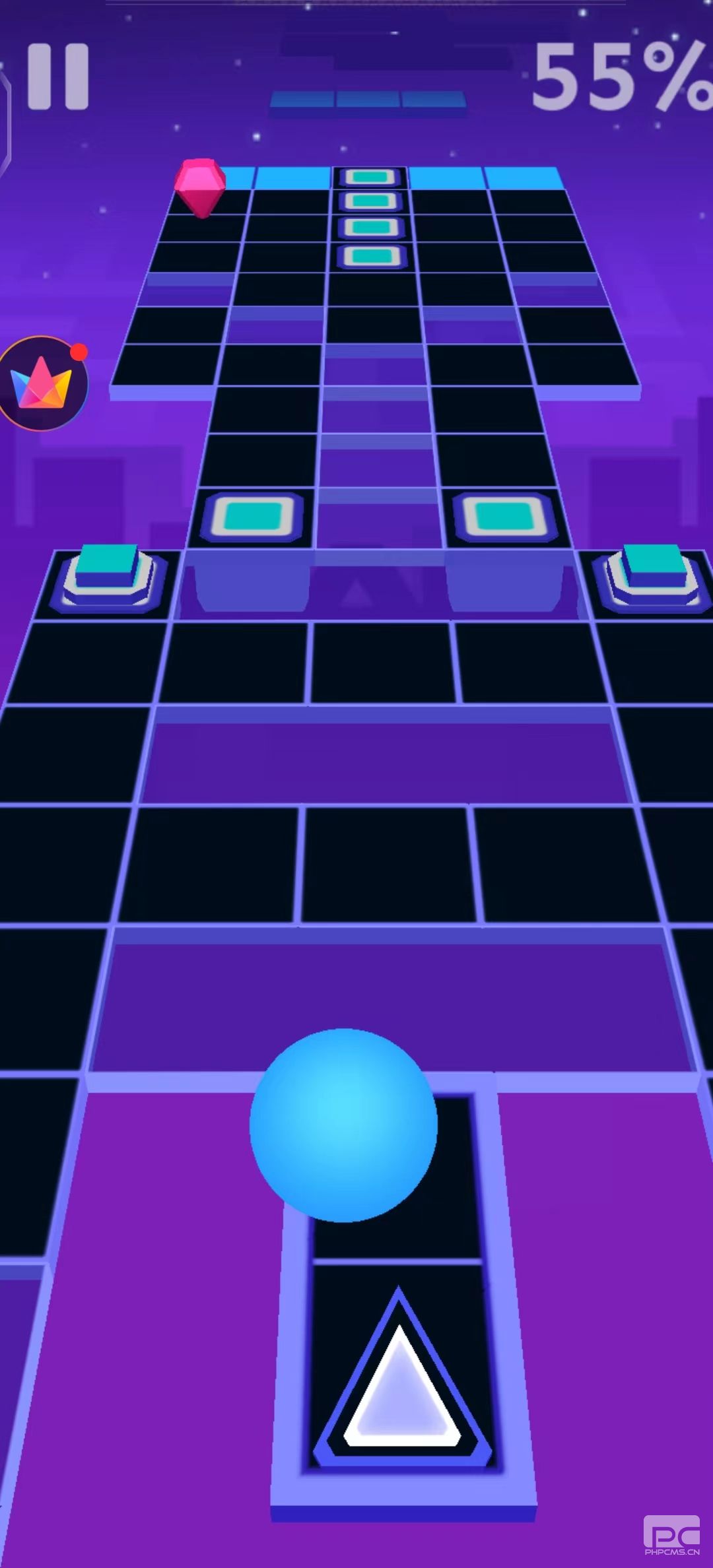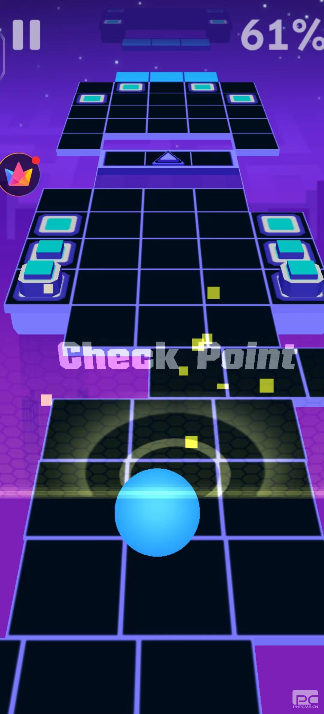 3、丰富的角色与皮肤系统允许玩家解锁不同外观的小球,如机械球、像素球等,每种皮肤可能带有特殊视觉效果,搭配电音关卡的炫光背景,进一步个性化游戏体验。