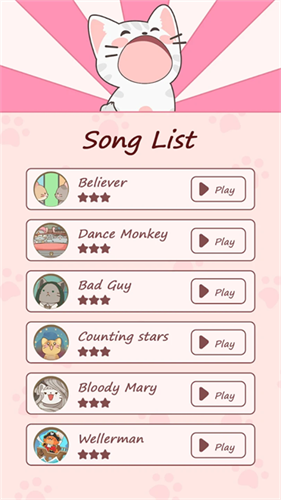 2、玩家在游戏中可以进行非常快乐的玩耍,因为游戏的音乐以及可爱的猫咪非常容易让你代入其中。