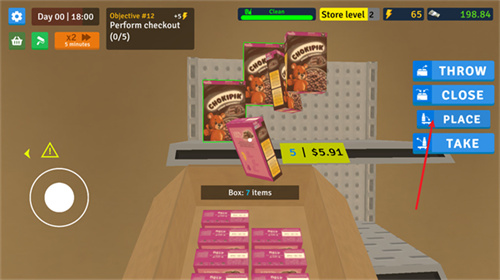 2、当货物配送到门口时,点击即可拾取,将货物搬运至货柜附近进行摆放。