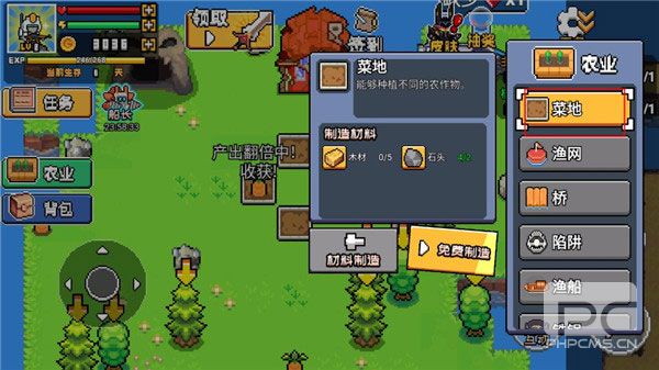 6、游戏可以在空旷地上种植草地,然后将自己需要种的蔬菜放入进去;