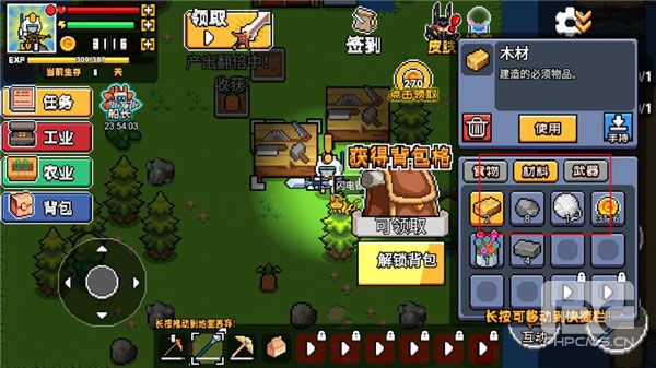 8、点击背包,食物、武器、材料等都在这里,需要的时候可以拿出来用