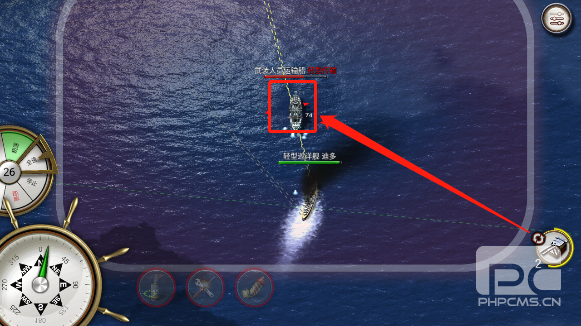 5、遭遇敌方军舰,我们需要使用武器标记,并击败对方;