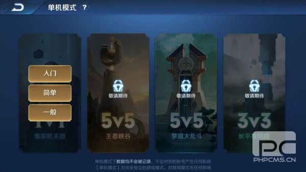 6、点击选择单机难度,有入门、简单、一般可选,根据自己的能力选择难度。