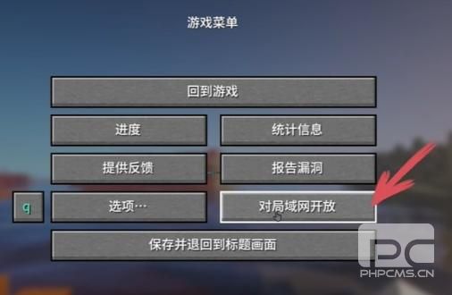 这时房主点开暂停菜单,点击“对局域网开放”