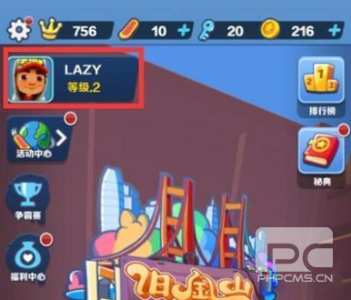 1、第一步就是需要打开地铁跑酷,然后点击左上角的【头像】。
