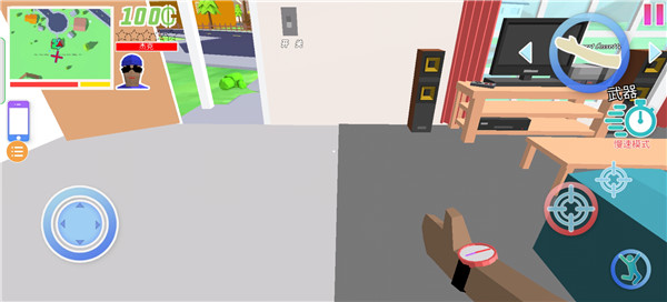 2、核心玩法围绕自由探索与创意互动展开,玩家可以驾驶各种载具穿梭于城市街道,使用丰富道具与NPC进行奇葩互动。游戏内包含50个无厘头挑战任务,如"用屁蹦上二楼"、"被洗衣机转晕10次"等,完成这些挑战会解锁更魔性的能力,为游戏增添更多欢乐元素。