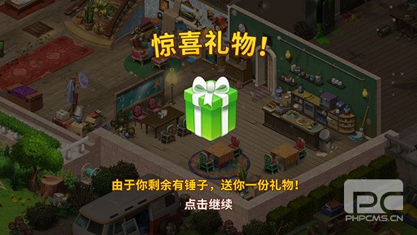 5、由于我们剩余有锤子,有时候还能收到惊喜礼物,点击继续即可拆开。
