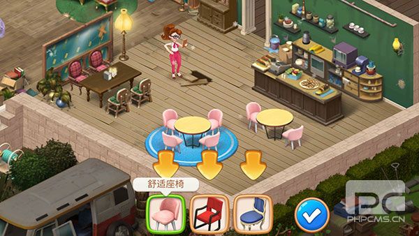 2、餐厅装饰与个性化设计:玩家可以利用通关获得的资源,从超过200种装饰物品中选择,自由设计和装扮咖啡馆的各个区域。无论是酒吧、餐厅还是花园,都可以根据玩家的审美进行个性化翻新,展现独特的设计技巧。