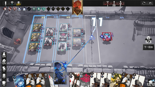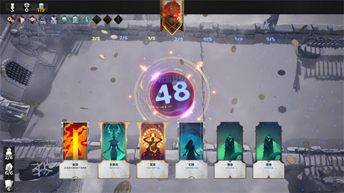 敌人进攻会累积"绝望值",达阈值触发暴风雪事件冻结手牌,必须用"希望火炬"卡牌提前消减压力条。