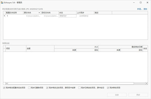 2、一旦创建了同步配置文件,所有操作都将在一个窗口中执行,该窗口设计为尽可能易于使用。
