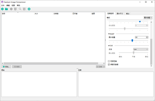 Caesium中文版最新版是一款图像压缩软件,可帮助你存储、传输和分享数码图片,支持 JPG、PNG、WebP 和 TIFF 格式,软件提供简洁且高效的操作界面,支持实时预览与批量图像处理功能,任何人都能轻松获得理想的压缩效果,它能够将大文件图片压缩为小文件,节省空间,方便存储和传输,能够自由调整图片压缩的比例,支持各种主流的图片格式,操作简单,还能批量压缩哦,有需要的话可以下载体验一番。