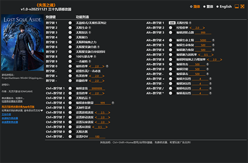 失落之魂修改器最新免费版是针对同名游戏开发的一款非常实用的免费辅助工具,拥有包括无敌模式、无限生命、无限复活等39项修改功能,能够帮助广大玩家更好的通关游戏,通过激活各项指令,玩家可突破战斗限制、自由调配资源,并解锁全收集要素,轻松应对高难度挑战或专注探索剧情与世界观,能对游戏进行多方面修改,通过它玩家可按自己意愿改变游戏体验,增添游戏乐趣。