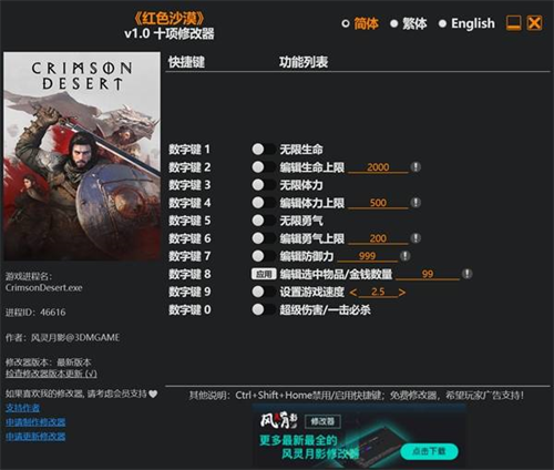 红色沙漠修改器最新免费版配置