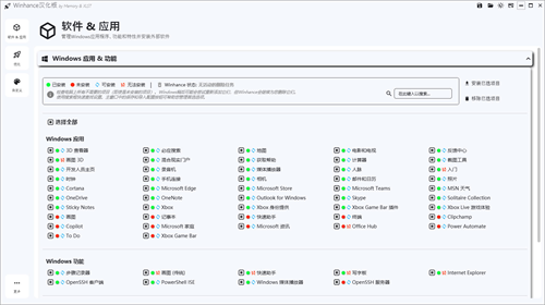 1、图形化操作:Winhance将复杂的PowerShell命令转化为直观的图形界面,操作简单易懂。