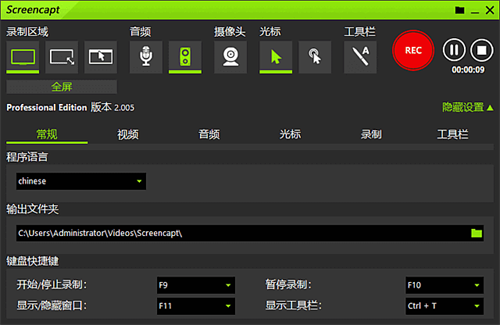 音频录制:录制系统声音和麦克风声音,支持多声道录制。