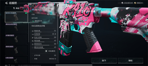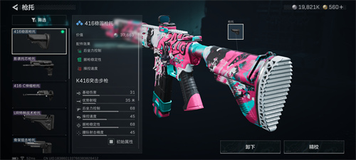 枪托选择416稳固枪托,虽降低一小部分的操控速度,但是拥有可管的据枪稳定性以及后坐力控制。