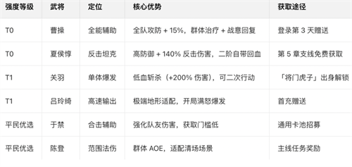注意:T0 级武将「郭嘉」「荀彧」暂未开放获取,后续活动将上线,可提前预留养成资源。
