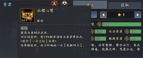 鲁肃的基础被动技能赋予他较强的异常状态抗性,当敌方施加的负面效果较多时,该能力能有效提升其战场存活率。每当回合结束时,鲁肃可自动清除自身部分负面状态,这一净化机制让他在长期作战中始终保持稳定状态。作为辅助型武将,这种自我维持能力极大减少了队伍对其额外保护的需求,使他在前排或中排都能发挥持续作用。这一特性也让鲁肃在对抗依赖异常累积的阵容时具备天然优势。