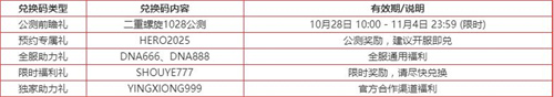 下表整理了当前所有有效的兑换码,请尽快使用。