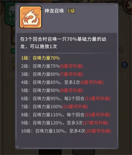 (3)关键技能的需求星数,这里以召唤神龙举例