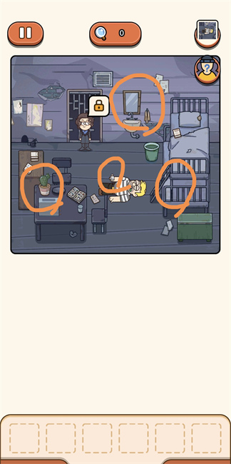 案件大师监狱谋杀案怎么玩?红发狱警,狱警右手有线索残留粉末,办公室门左边饮水机内绿色的水是线索,右边有空调开关,调高温度,狱警就会热得脱衣服,获得线索手腕上的编号;办公室左边的铁柜内有一个天平,把砝码全部放进去可以获得线索警徽。