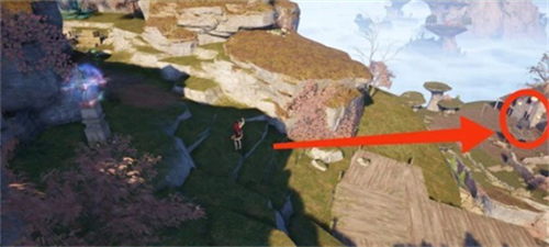 传送至麦浪农场后向后转,沿右下方平台漂浮前进,经过气流柱即可到达盖章点位置,位于石屋前方。